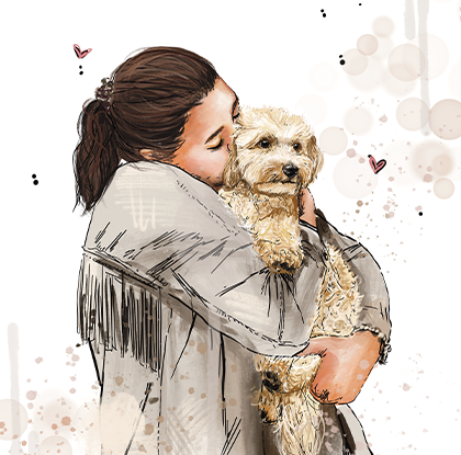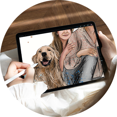 Neben dem Grafikdesign male ich Auftragsarbeiten und halte Erinnerungen fest, die es oft nicht als Foto gibt. Ich male Menschen und Tiere nach Vorlage und füge einzelne Bilder zu einem neuen, besonderen Moment zusammen.
